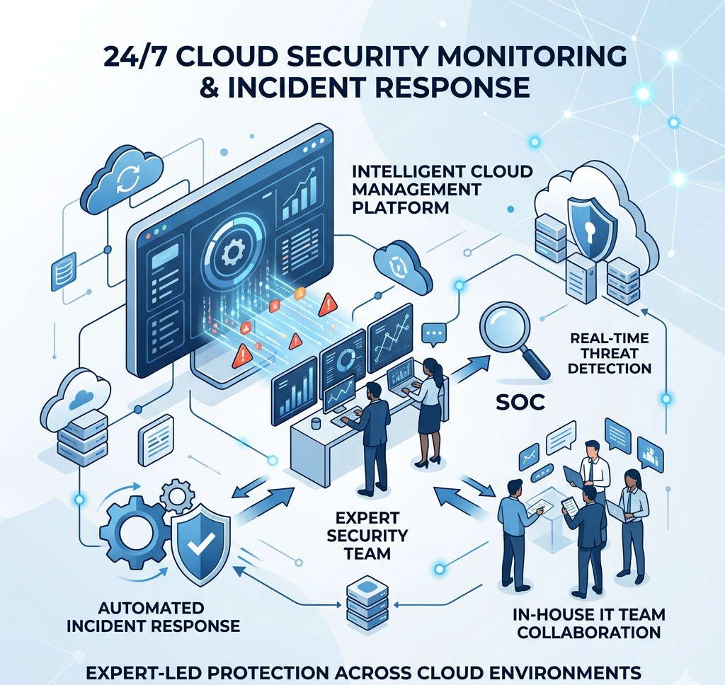 By combining advanced security controls, continuous monitoring, and compliance management, we empower businesses to confidently leverage the cloud while safeguarding critical assets and achieving regulatory compliance.