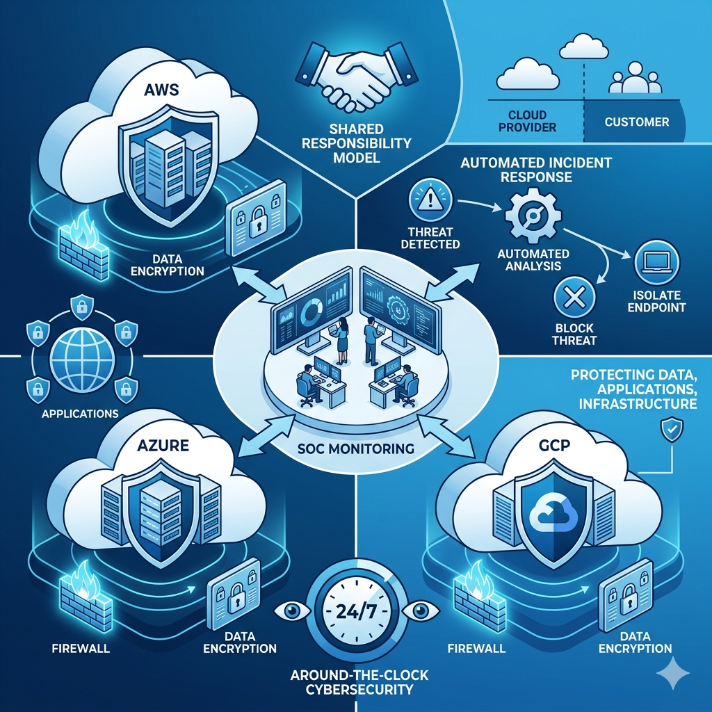 Cloud security encompasses a range of measures, technologies, and best practices designed to safeguard cloud-based infrastructure, applications, and data against unauthorized access, cyber threats, and data breaches. It is a shared responsibility: while cloud service providers secure the underlying infrastructure—servers, storage, and network—customers are responsible for protecting their applications, data, and user access.